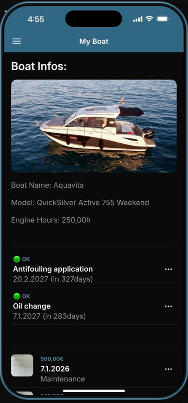 Track and document your maintenance, never ever lose a receipt again, increase your boats value.